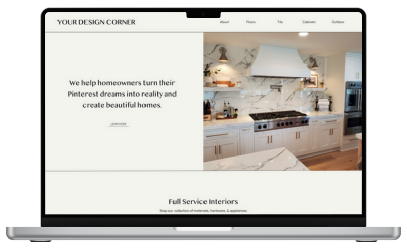 Your Design Corner is an interior design showroom based in Dawsonville, Georgia, specializing in curated materials for modern home renovations. They needed a website that beautifully showcased their in-store product selection—ranging from cabinetry and countertops to flooring and hardware—while also highlighting their design portfolio. I designed a clean, neutral-toned site that reflects the sophistication of their brand and appeals to their high-end clientele. The layout was built with both form and function in mind—easy to navigate, visually balanced, and optimized with dedicated landing pages to support ongoing marketing campaigns.